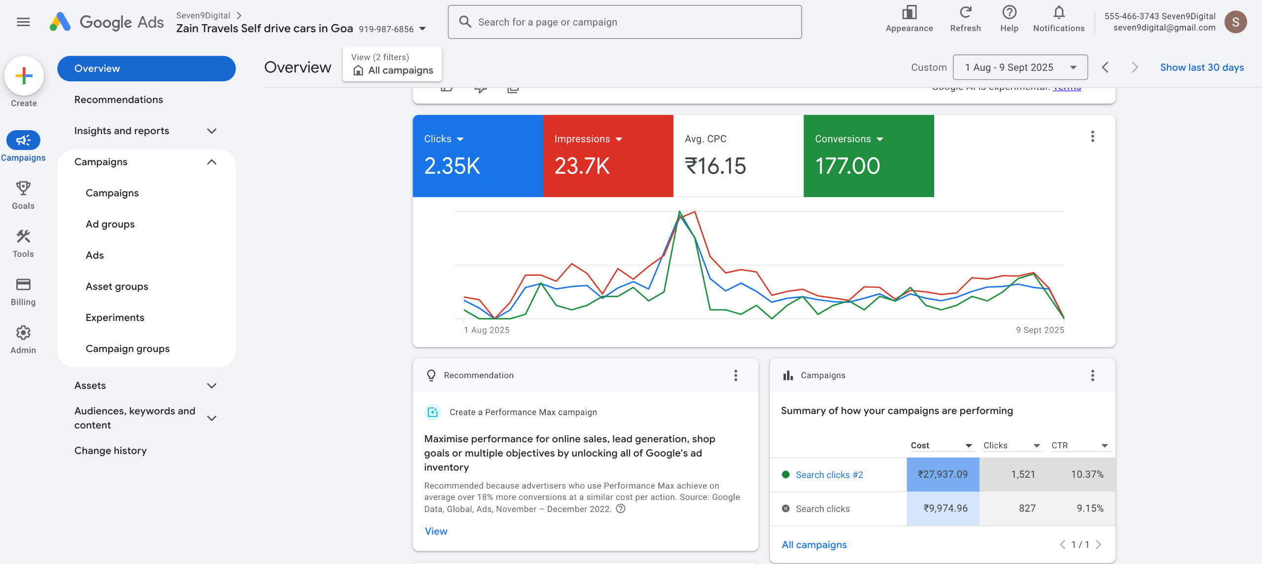 About UsWelcome to seven9Digital, your trusted partner in digital advertising. We specialize in helping businesses of all sizes create, manage, and optimize ad campaigns on Google and Meta (Facebook and Instagram). Our mission is to elevate your brand’s online presence and drive meaningful results through strategic, data-driven advertising solutions.Our ExpertiseAt seven9Digital, we understand the complexities of digital advertising. Our team of seasoned professionals is well-versed in the latest trends and best practices in the industry. We utilize advanced targeting techniques, compelling ad creatives, and robust analytics to ensure your campaigns reach the right audience at the right time.Why Choose Us1. Customized Strategies: We tailor our advertising strategies to meet your unique business goals. Whether you’re looking to increase brand awareness, drive website traffic, or boost sales, we create campaigns that align with your objectives.2. Data-Driven Approach: Our decisions are backed by data. We continuously monitor and analyze campaign performance to optimize your ad spend and maximize ROI. Our insights help you understand what works and where there’s room for improvement.3. Comprehensive Services: From initial setup and ad creation to ongoing management and reporting, we offer end-to-end services for Google and Meta advertising. Our holistic approach ensures that every aspect of your campaign is handled with expertise and care.4. Proven Results: We have a track record of delivering successful campaigns for our clients. Our portfolio includes a diverse range of businesses, each benefiting from our strategic approach and innovative solutions.Our Process1. Discovery and Strategy: We start by understanding your business, target audience, and advertising goals. This initial phase lays the groundwork for a customized advertising strategy.2. Campaign Setup: Our team handles all aspects of campaign setup, including keyword research, audience targeting, and ad creation. We ensure your campaigns are primed for success from the outset.3. Optimization and Management: We continuously monitor your campaigns, making data-driven adjustments to improve performance. Our proactive approach ensures your ads stay relevant and effective.4. Reporting and Analysis: Transparency is key. We provide regular reports and insights into your campaign performance, helping you understand the impact of your advertising efforts and make informed decisions.Join UsPartner with seven9Digital and take your digital advertising to the next level. Let us help you navigate the complexities of Google and Meta advertising, driving growth and success for your business. Contact us today to get started on your journey to digital excellence.